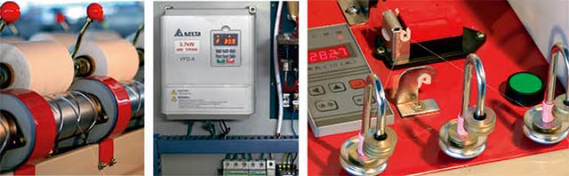 JX358并纱机实行机电一体化设计制造,结构简练,易于安装调整,操作方便,并具有中央电脑程序设置,单锭电机,电子定长,满筒自停,电子防叠,变频调速,单锭控制,断纱自停,各锭清零, 数据记忆等功能。